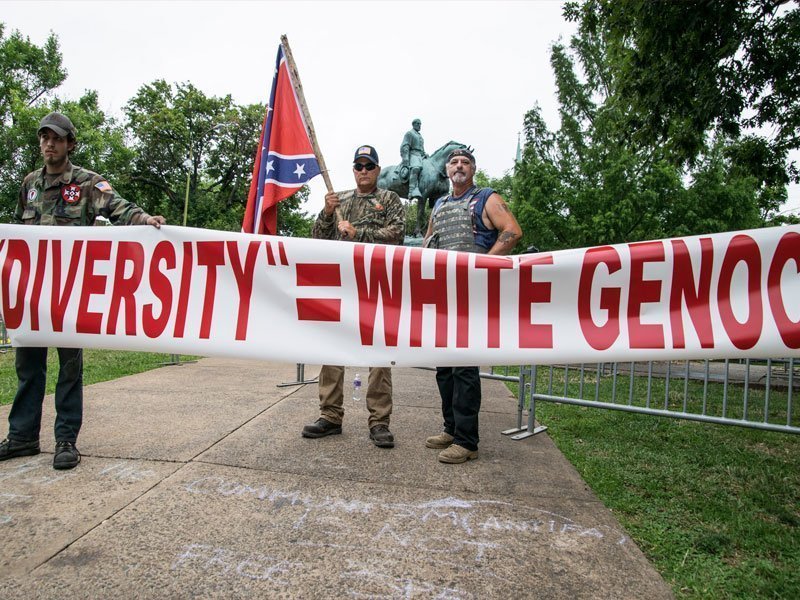 Демонстранты с плакатом против «белого геноцида» Rodney Dunning/Flickr Американские СМИ продолжают обсуждать реакцию президента США Дональда Трампа на инцидент в Шарлотсвилле. Первоначально критики возмущались, потому что Трамп эксплицитно не осудил белых расистов, а только сказал, что насилие недопустимо, и в нем повинны «многие стороны». Потом Трамп все-таки осудил белых расистов, после чего выступил на пресс-конференции и сказал, что виноваты обе стороны столкновения.