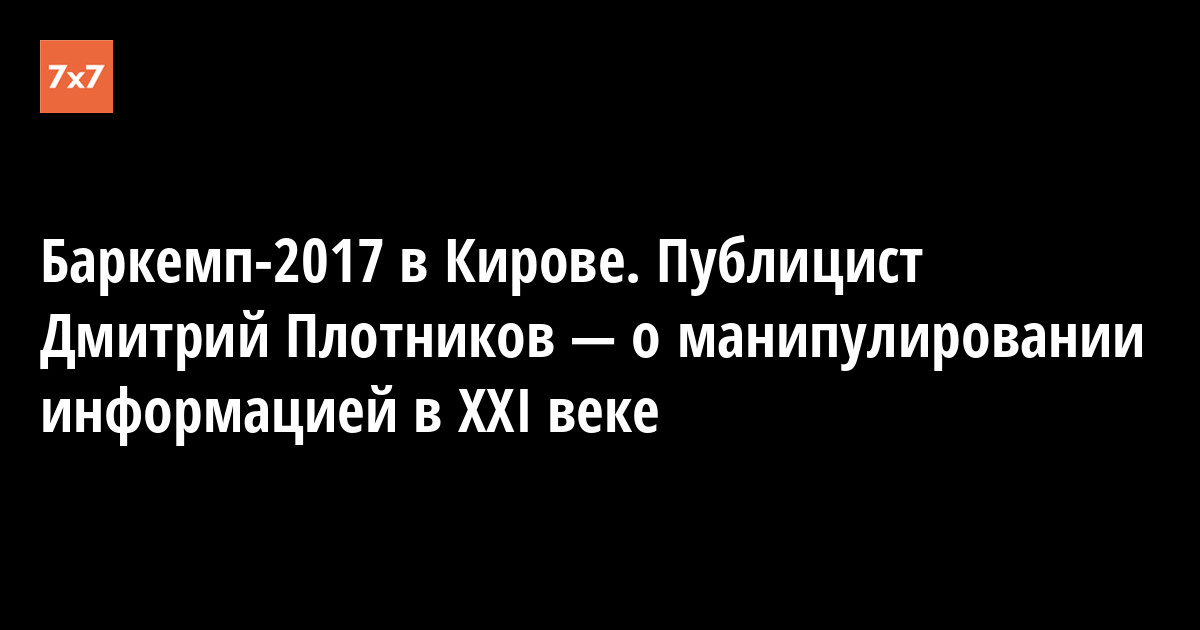 Баркемп-2017 в Кирове. Публицист Дмитрий Плотников — о манипулировании информацией в XXI веке