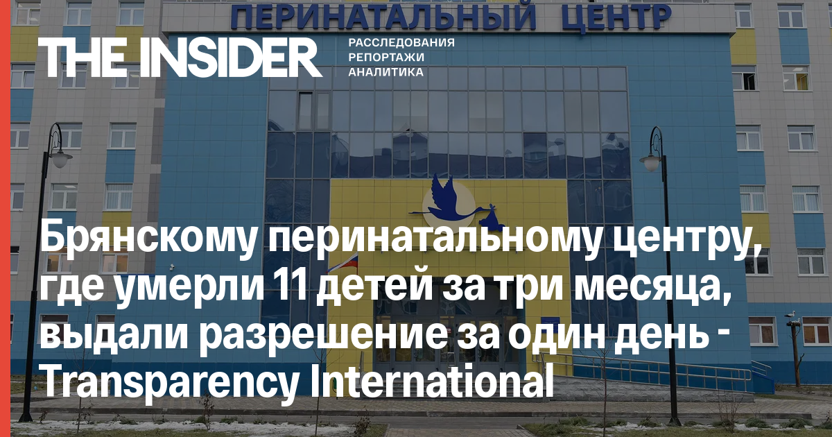 Брянскому перинатальному центру, где умерли 11 детей за три месяца, выдали разрешение за один день - Transparency International