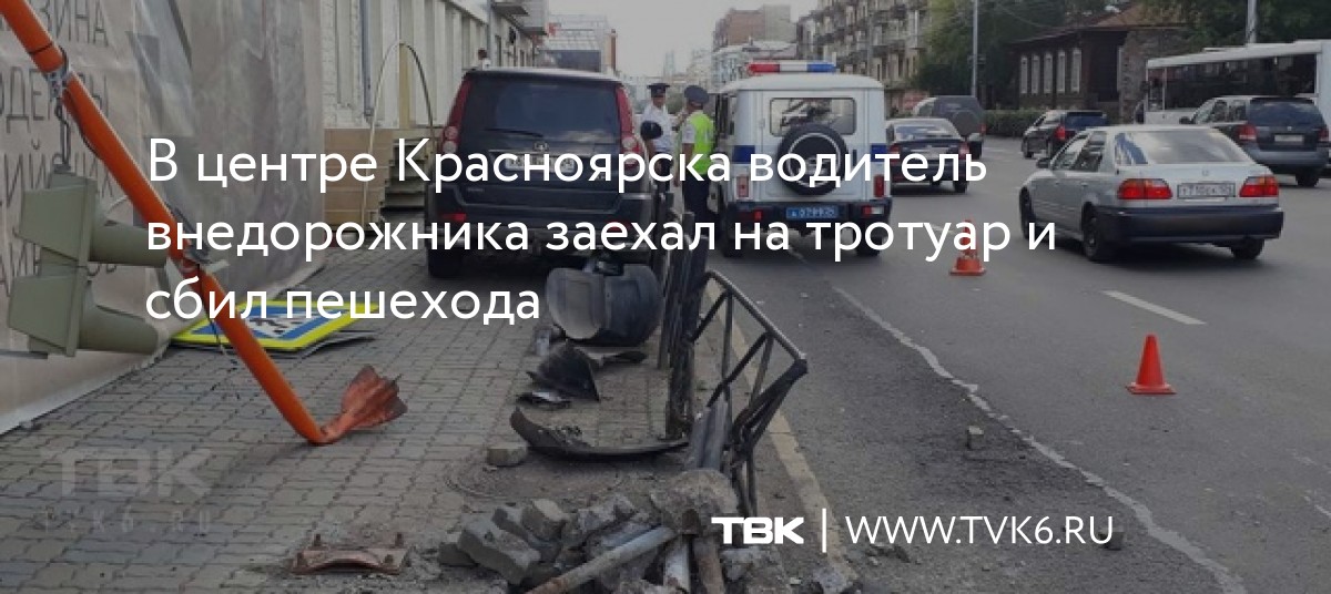 В центре Красноярска водитель внедорожника заехал на тротуар и сбил пешехода