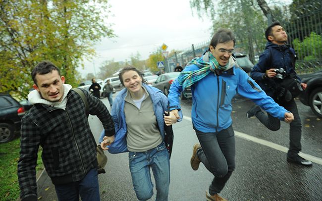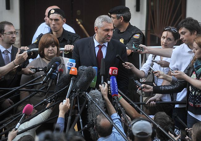 Александр Уткин / Sputnik / Scanpix / LETA Адвокаты Pussy Riot Николай Полозов, Виолетта Волкова и Марк Фейгин после приговора участницам группы, 17 августа 2012 года