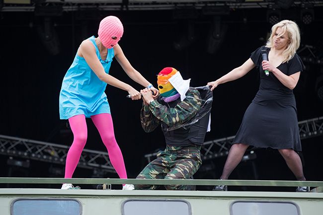Jim Ross / Invision / AP / Scanpix / LETA Pussy Riot на фестивале в Гластонбери