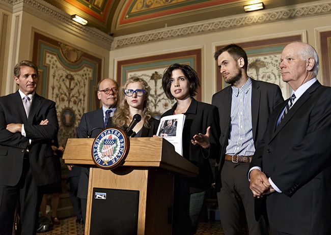 J. Scott Applewhite / AP / Scanpix / LETA Мария Алехина, Надежда Толоконникова и Петр Верзилов в Вашингтоне, 6 мая 2014 года