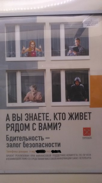 Автором социальной рекламы, призывающей сообщать о подозрительных соседях, стал благотворительный фонд «Развитие», пишет «Фонтанка». Рекламу с текстом: «Бдительность — залог безопасности» горожане заметили в метро несколько дней назад. Они отнеслись к объявлению неоднозначно, увидев в нем призыв «доносить» на соседей в правоохранительные органы.