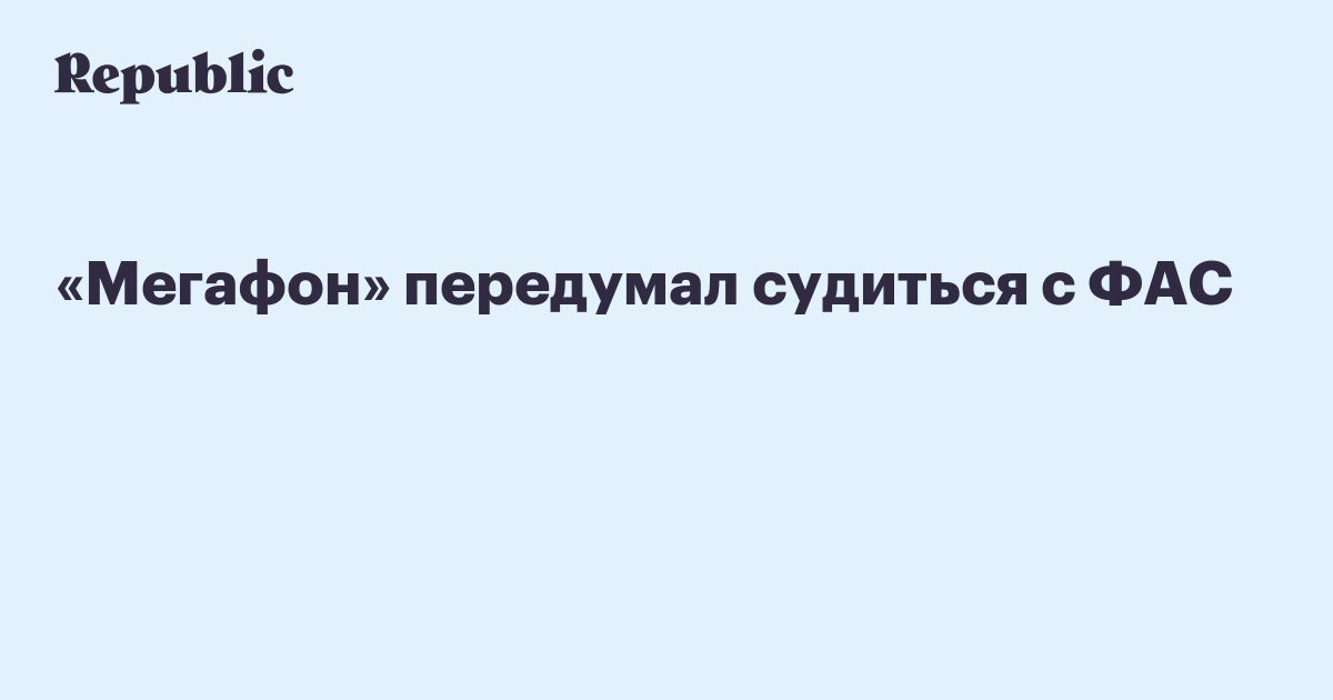 «Мегафон» отозвал из суда иск к Федеральной антимонопольной службе (ФАС), сообщает «Интерфакс» со ссылкой на картотеку арбитражный дел.