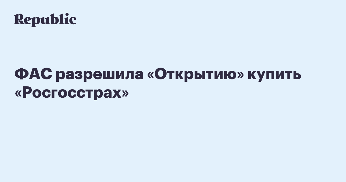 ФАС разрешила «Открытию-информ» купить 100% акций группы компаний «Росгосстраха». Об этом сказано на сайте регулятора.