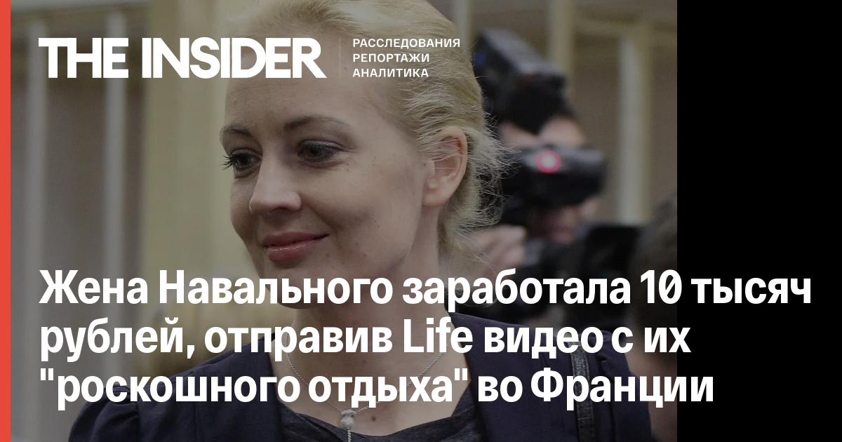 Жена Навального заработала 10 тысяч рублей, отправив Life видео с их "роскошного отдыха" во Франции