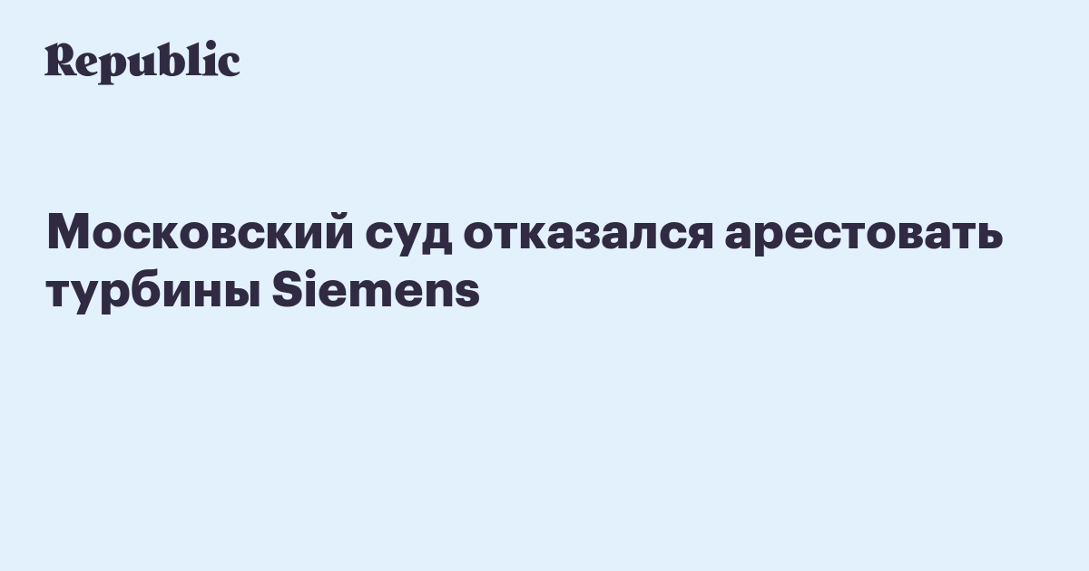 Арбитражный суд Москвы отказался наложить арест на турбины Siemens в рамках обеспечительных мер по иску немецкого концерна. Как говорится в карточке дела, решение было вынесено 18 августа, 20 августа на него обратило внимание РАПСИ.