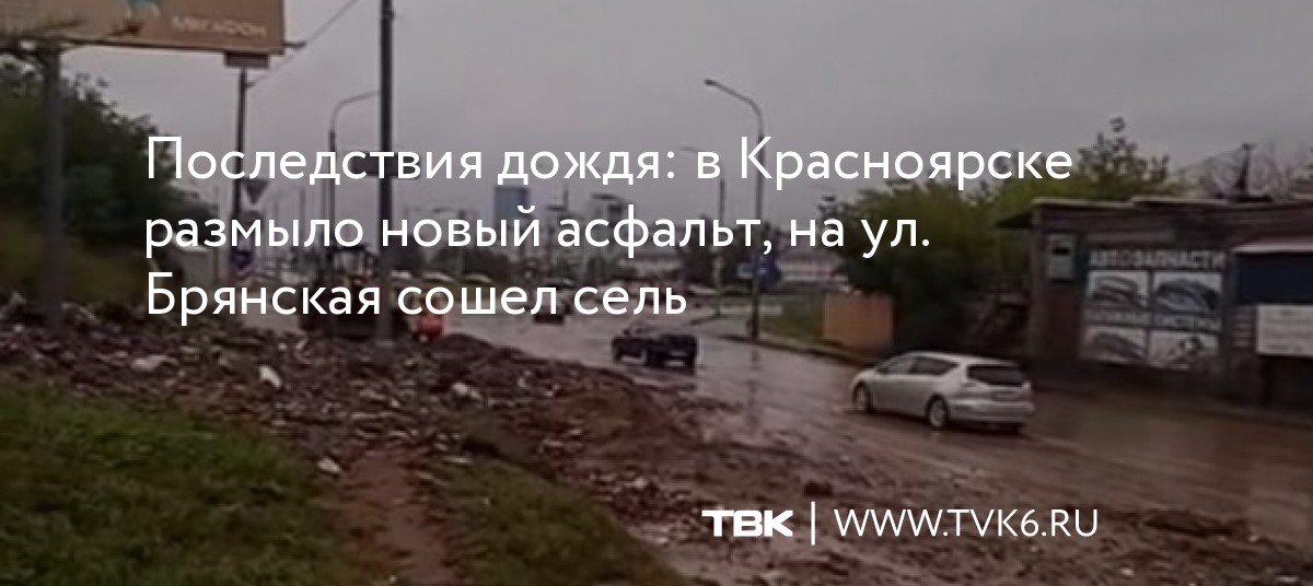 Последствия дождя: в Красноярске размыло новый асфальт, на ул. Брянская сошел сель