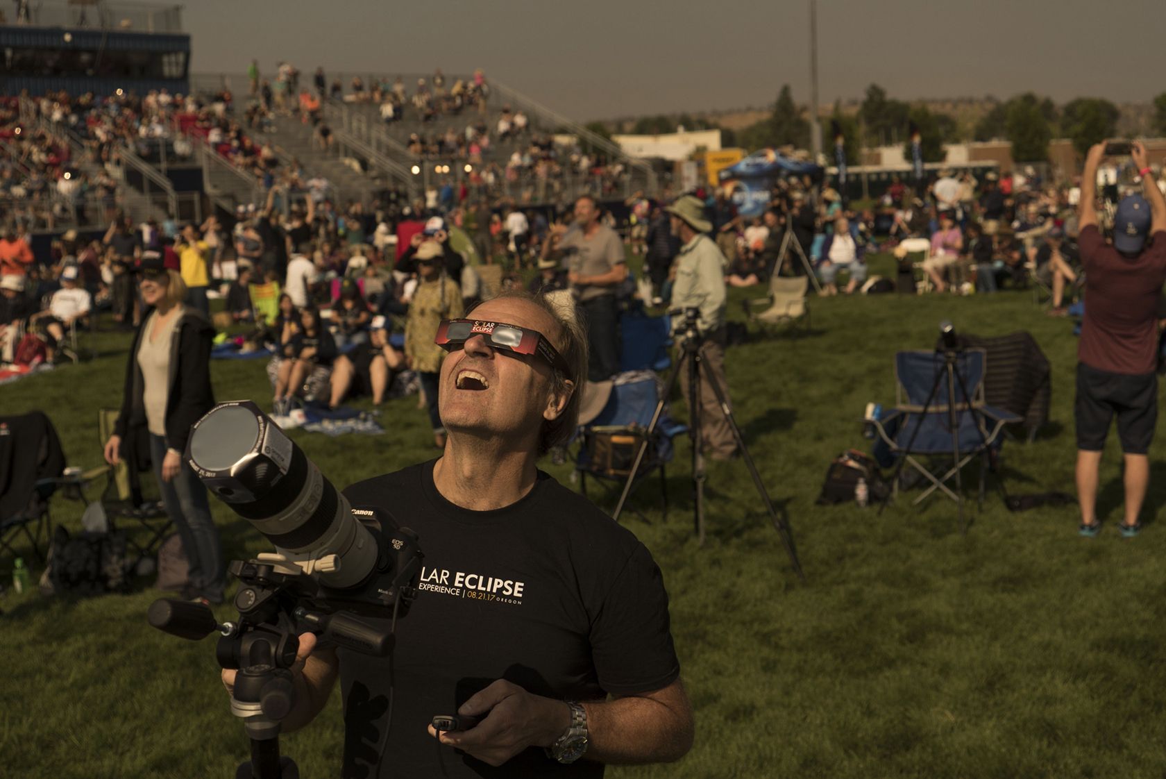 В понедельник, 21 августа, в США можно было наблюдать полное солнечное затмение: тень от Луны прошла по территории страны с запада на восток. К этому редкому явлению все активно готовились: простые американцы закупали специальные защитные очки, а NASA отправило истребитель в погоню за лунной тенью. «Медуза» собрала фотографии, сделанные во время затмения в США.