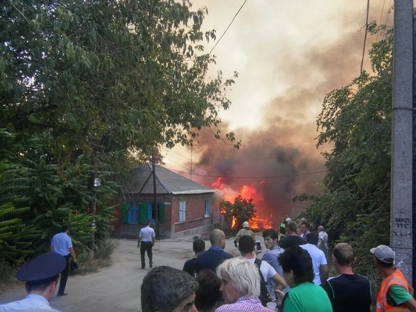 Издание Donday сообщает, что «огнем охвачены десятки домов на улицах Нижегородской, Седова, в Грибоедовском и Чувашском переулках».