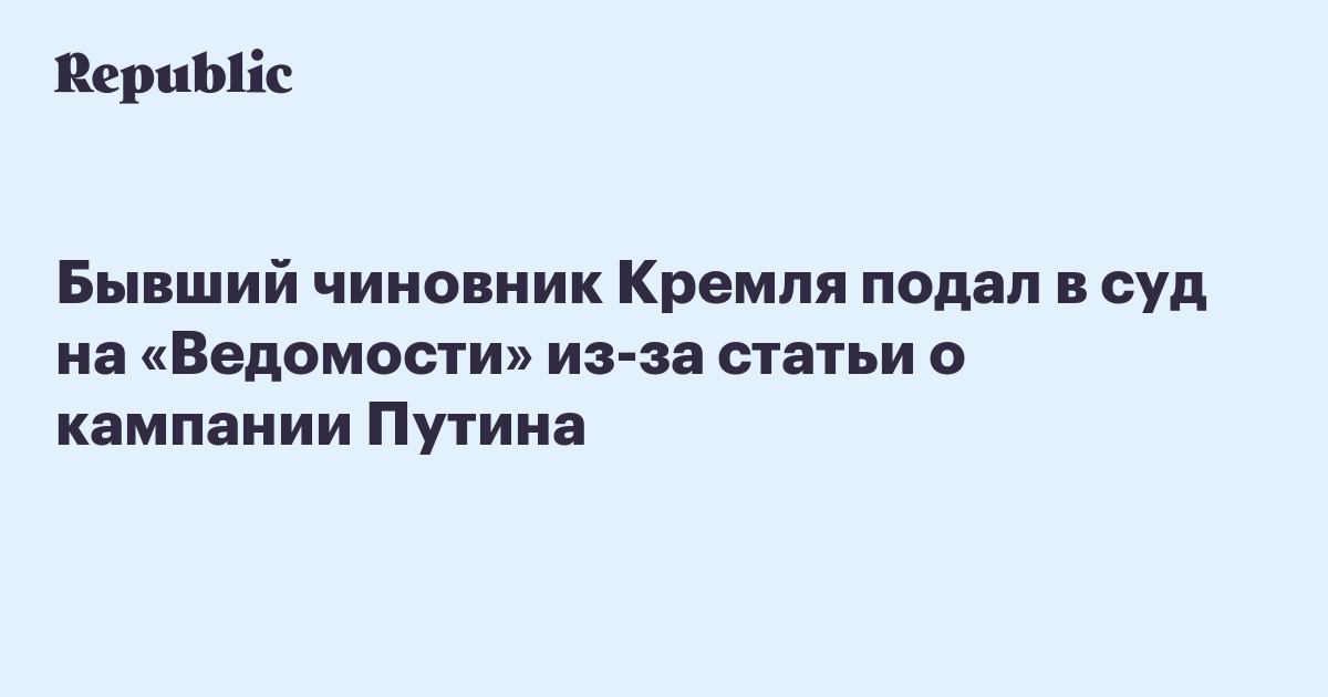 Бывший чиновник Кремля подал в суд на «Ведомости» из-за статьи о кампании Путина