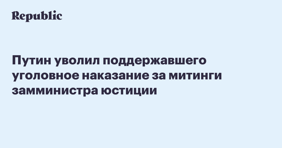 Путин уволил поддержавшего уголовное наказание за митинги замминистра юстиции