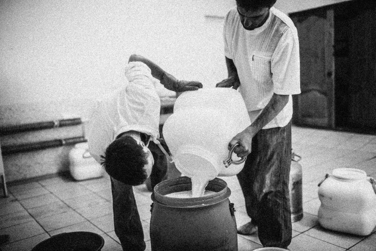 Раиса — одна доярка на всю конеферму. В помощники никто из местных идти не хочет, особенно молодежьРаиса каждую кобылу называет по имени: Лариса, Лаура, Галя, Анфиса… Ее любимица — высокая белоголовая Латифа. Пытается их построить и загнать на дойку. Наконец первая партия зашла. Всего семь кобыл. Раиса гладит красавиц по бокам и морде, уговаривает быть послушными. Потом берет ведро, табурет. Дмитрий выпускает одного жеребенка. Тот подбегает к кобыле. Как только он начинает сосать, Малахов отгоняет его. И только после этого доярка берется за вымя. «Дай молока!» — покрикивает Рая на подопечную. В ведро брызжут первые струи. Молоко белое-белое, густое. На вид плотнее коровьего. И очень сладкое. Именно поэтому так быстро начинает бродить, когда в него добавляют закваску для кумыса.