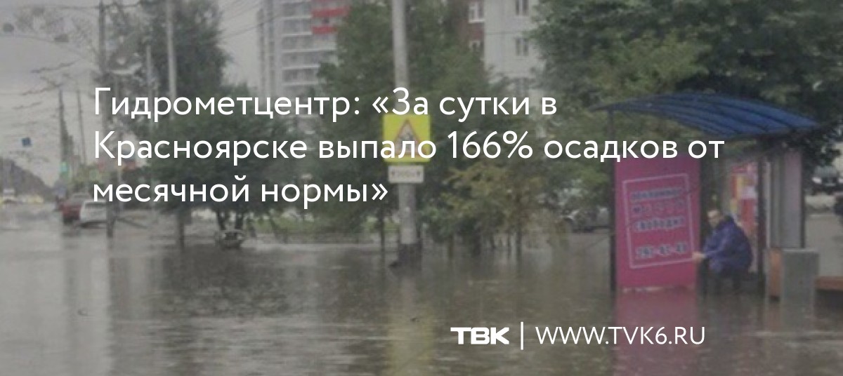 Гидрометцентр: «За сутки в Красноярске выпало 166% осадков от месячной нормы»