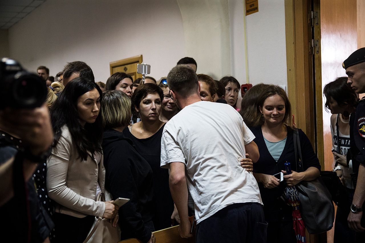 Кирилл Серебренников в Басманном суде и акция в поддержку режиссера. Фотографии