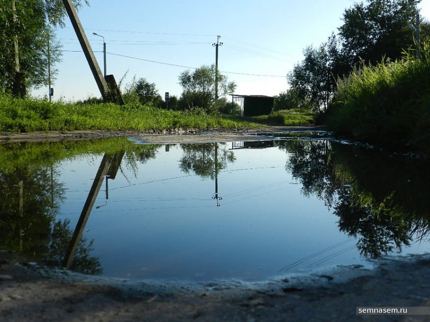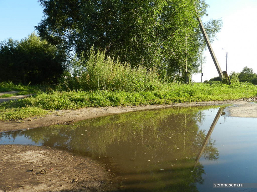 В конце улицы Советской, за остановкой общественного транспорта действительно когда-то разлилась лужа, которая уже превратилась в зловонное болото. Если пойти от него вверх по улице, в траве можно обнаружить нечто наподобие пробивающегося из земли родничка: бьет ключ из прохудившейся водопроводной трубы. Вместе с водой утекают деньги, которых, по словам местных, в бюджете сельского поселения отродясь не было.