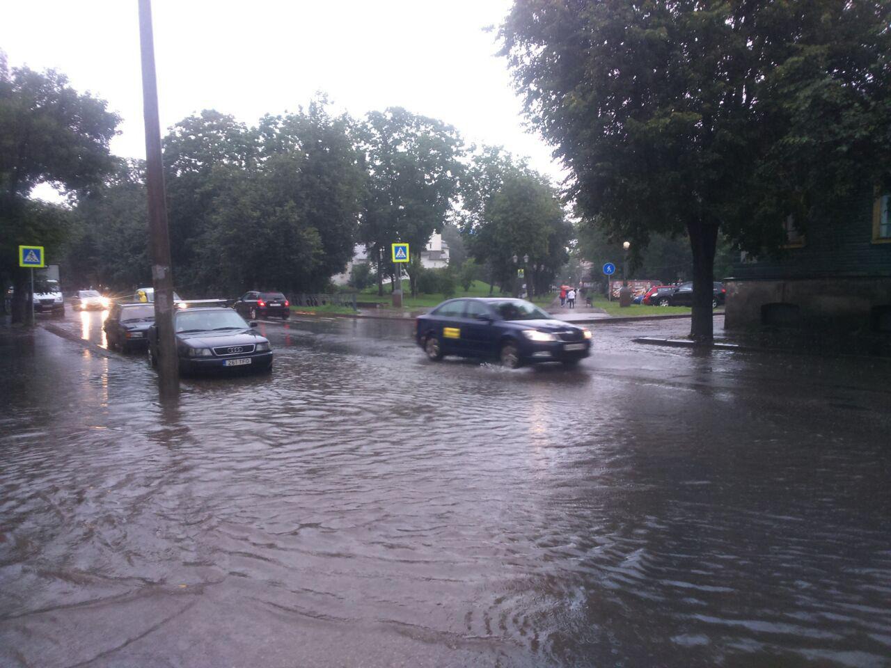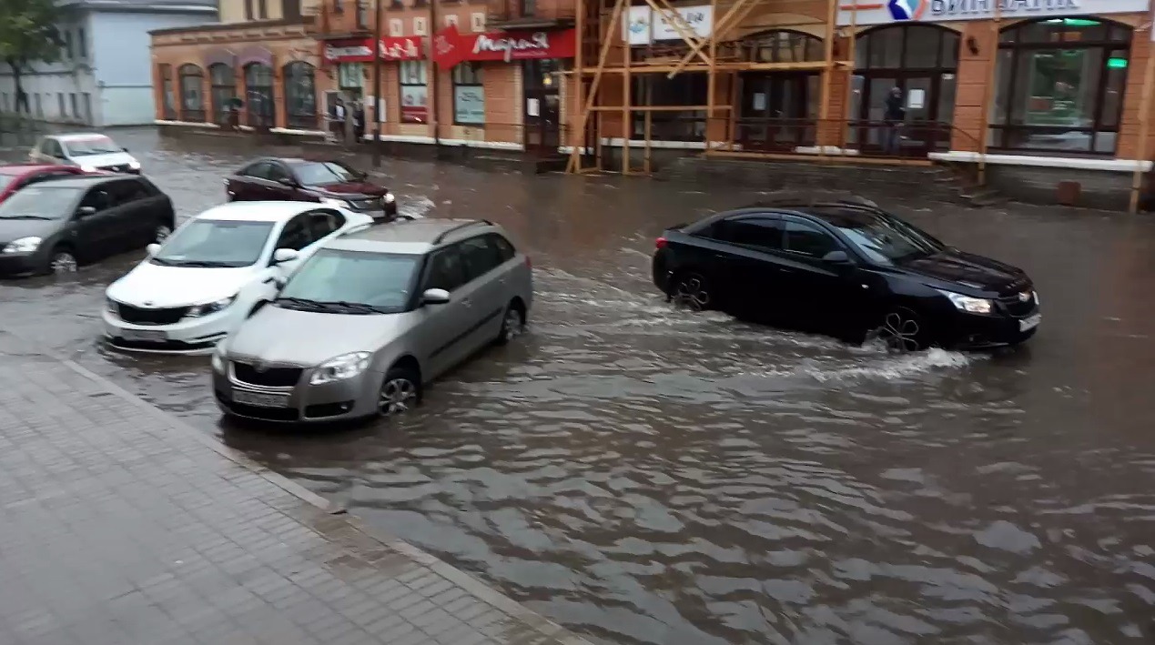 В Пскове из-за ливня перекрыто движение на нескольких улицах. ФОТО