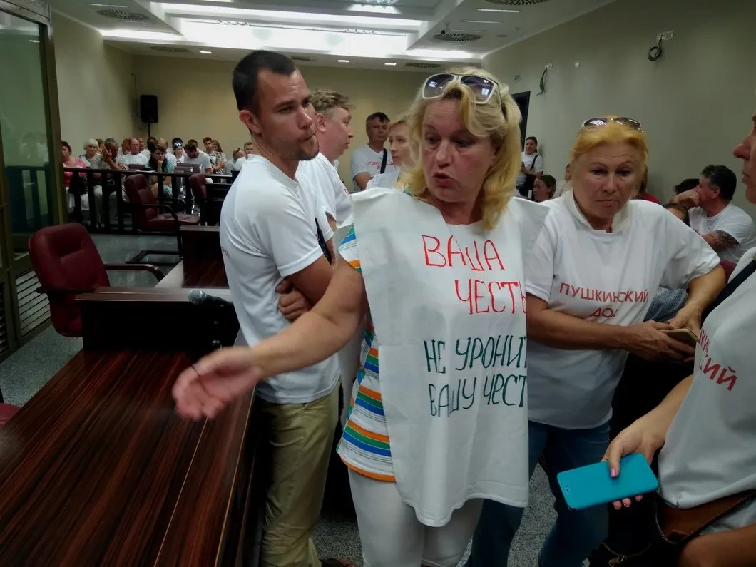 Когда делегация планировала пройти от суда до мэрии в футболках с надписью «Пушкинский дол», сотрудники геленджикского отделения МВД по Краснодарскому краю вручили людям предупреждения о недопущении экстремисткой деятельности.