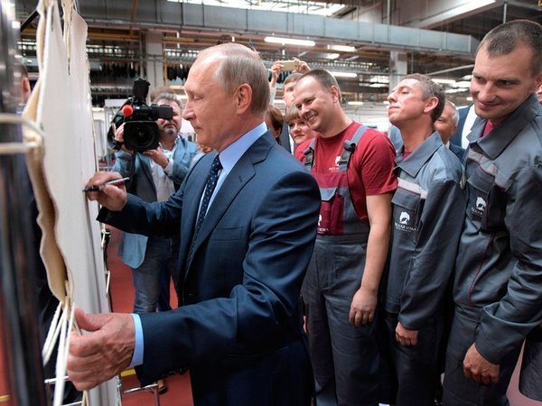 Путина на заводе попросили расписаться на память: он устроил автограф-сессию вместе с рабочими pic.twitter.com/fCVgLOFlwS