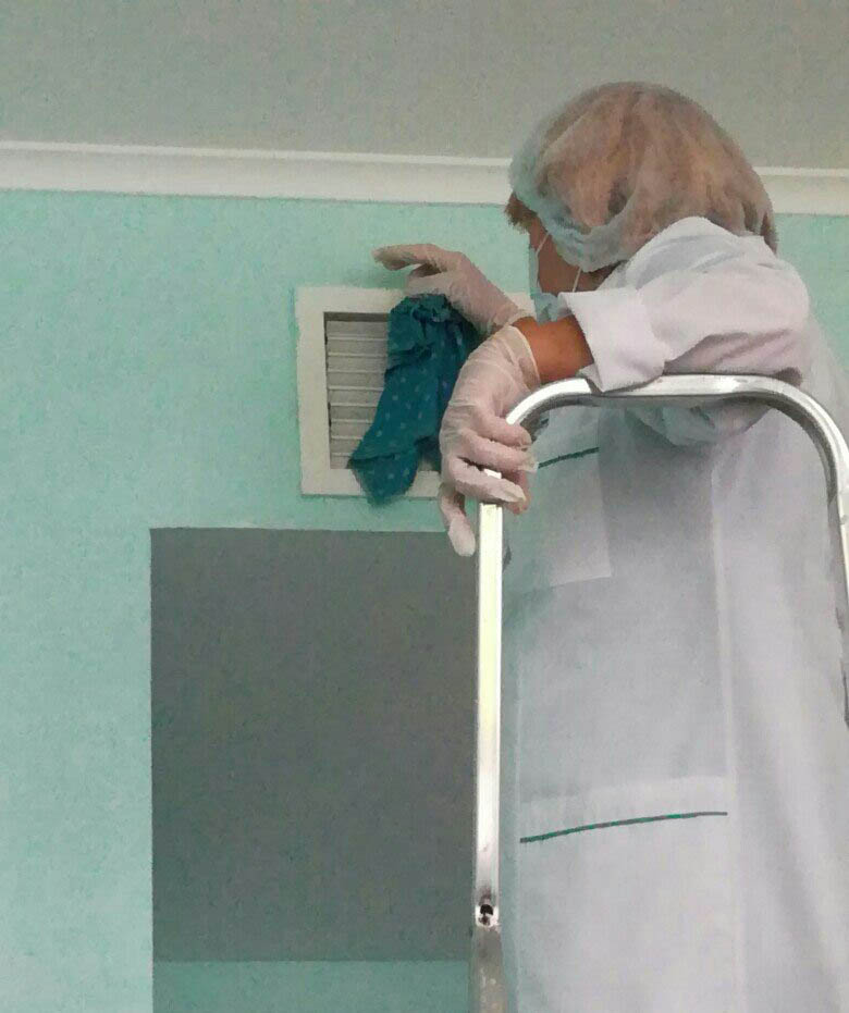 В Кемеровской больнице. В восемь часов вечера внеурочно драят вентиляцию и люстры перед очередной проверочной комиссией.Фото: из личного архива Татьяна Протасова говорит, что не уходит с поста главы Областного центра муковисцидоза только из-за того, что лечить детей больше некому:
