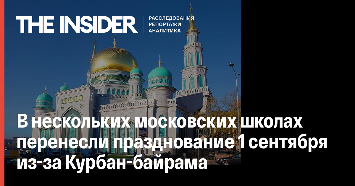 В школах Мещанского района, которые располагаются недалеко от Московской соборной мечети, отменили линейку 1 сентября из-за празднования Курбан-байрама, который в этом году выпал на этот же день. Об этом радиостанции «Говорит Москва» сообщили родители детей.