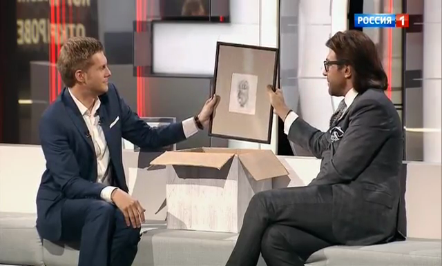 Открывают коробку, с которой Малахов ушел с Первого канала. Достают фотографию его отца.