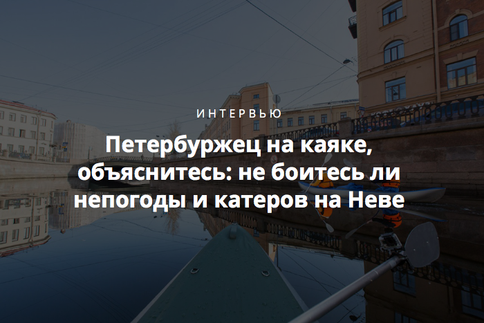 На каяке к тому же всегда можно девчонок повозить, показать им город — романтично, ведь это Петербург. Я иногда даже незнакомых людей катаю, чтобы просто показать им, как город выглядит «изнутри». Просто я могу это сделать, а другие нет. Хочется делиться возможностями.