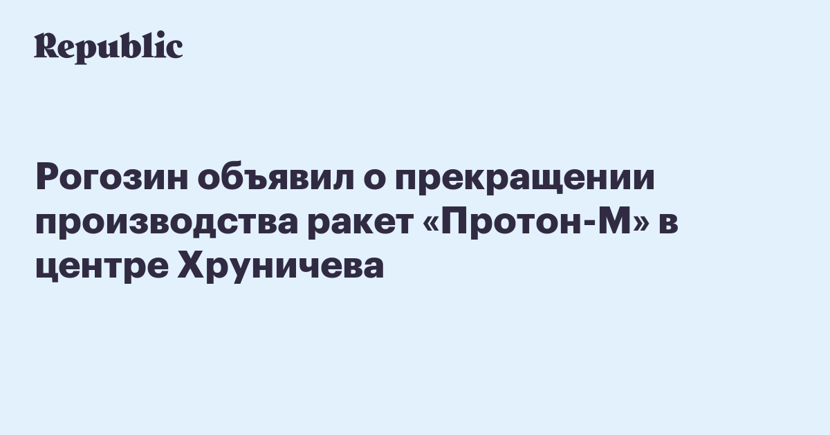 Рогозин объявил о прекращении производства ракет «Протон-М» в центре Хруничева