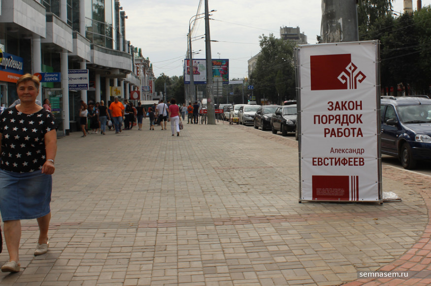 Не очень заметны в обычные дни волонтеры кандидатов. И здесь наиболее активен Александр Евстифеев: за врио главы агитируют при помощи средства, опробованного несистемной оппозицией — кубы Евстифеева располагаются возле Дома торговли и Центрального рынка. Год назад здесь ставили кубы коммуниста Сергея Казанкова. С разрешением властей, очевидно, у штаба Евстифеева не возникает таких проблем, как у активистов штаба Навального: они за все лето смогли согласовать проведение двух-трех кубов.