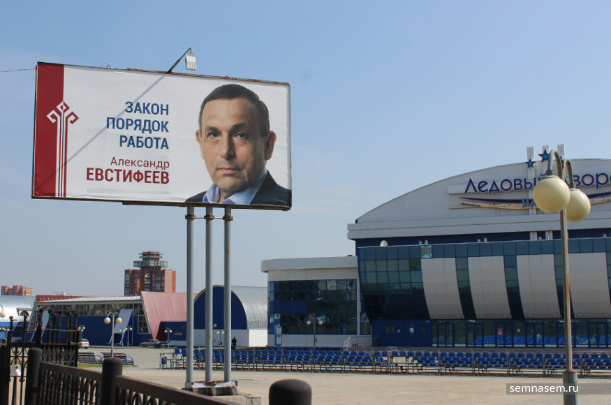 Изображения кандидата на выборах главы Марий Эл Александра Евстифеева размещены на магистральных рекламных щитах в разных местах Йошкар-Олы.