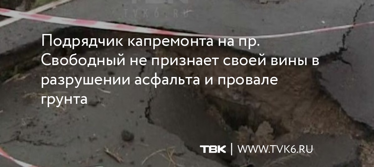 Подрядчик капремонта на пр. Свободный не признает своей вины в разрушении асфальта и провале грунта
