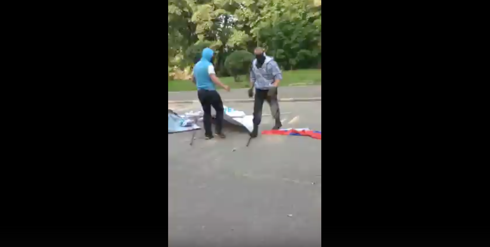 «Трое в масках разорвали в клочья куб, порвали российские флаги, разгромили площадку, забрали газеты и скрылись. На место происшествия прибыл наряд полиции», — пишут активисты. Они отмечают, что полицейские приняли заявление, но не стали вызывать следственную группу и не проводили следственные действия на месте нападения.