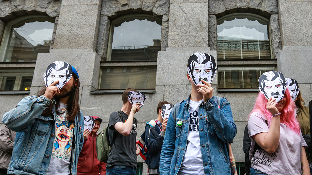 Активисты движения «Весна» с масками персонажа романа Джорджа Оруэлла «1984», во время акции «За свободный интернет» в Санкт-Петербурге. Фото: Сергей Коньков/ТАСС 26 August 2017, 09:51 26 августа в российских городах пройдут акции «За свободный интернет». Активисты соберутся в Москве, Санкт-Петербурге, Екатеринбурге, Новосибирске, Ярославле, Ижевске, Воронеже, Владивостоке и Барнауле.
