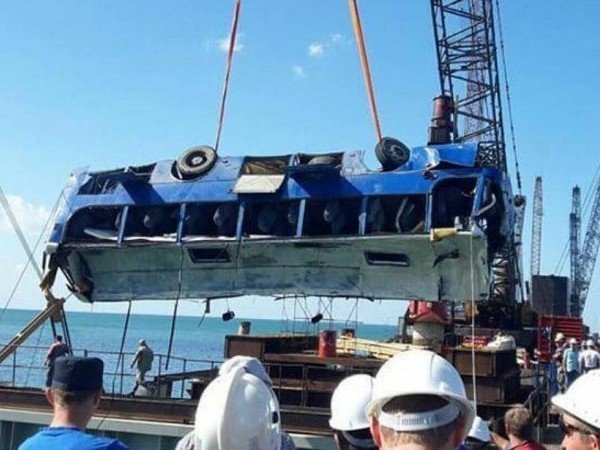 Накануне утром вахтовый автобус, в котором находились 52 человека, упал со строящегося пирса в Керченский пролив в краснодарском поселке Волна.