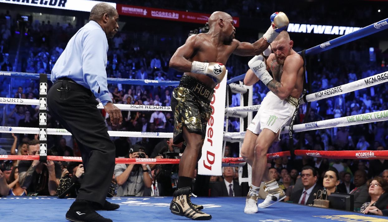 Макгрегор вел довольно грязный бой. Он попадал по затылку, захватывал руки и давил в клинче на шею противника. В этом не было ни злобы, ни изуверства — Макгрегор просто пытался по максимуму измотать Мейвезера и вывести его из себя. Но чем дольше длился бой, тем сильнее уставал сам Конор. У него стали заплетаться ноги, а из ударов уходила жесткость и акцент. После затяжной атаки Мейвезера в десятом раунде рефери остановил бой, прекратив поединок, который начал превращаться в избиение.