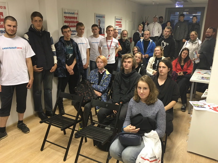 Сторонники Навального 27 августа открыли штаб в Петрозаводске через полчаса после задержания активиста Алексея Трунова. На открытие пришли 27 человек — это активисты штаба и волонтеры, сообщил корреспондент «7x7».