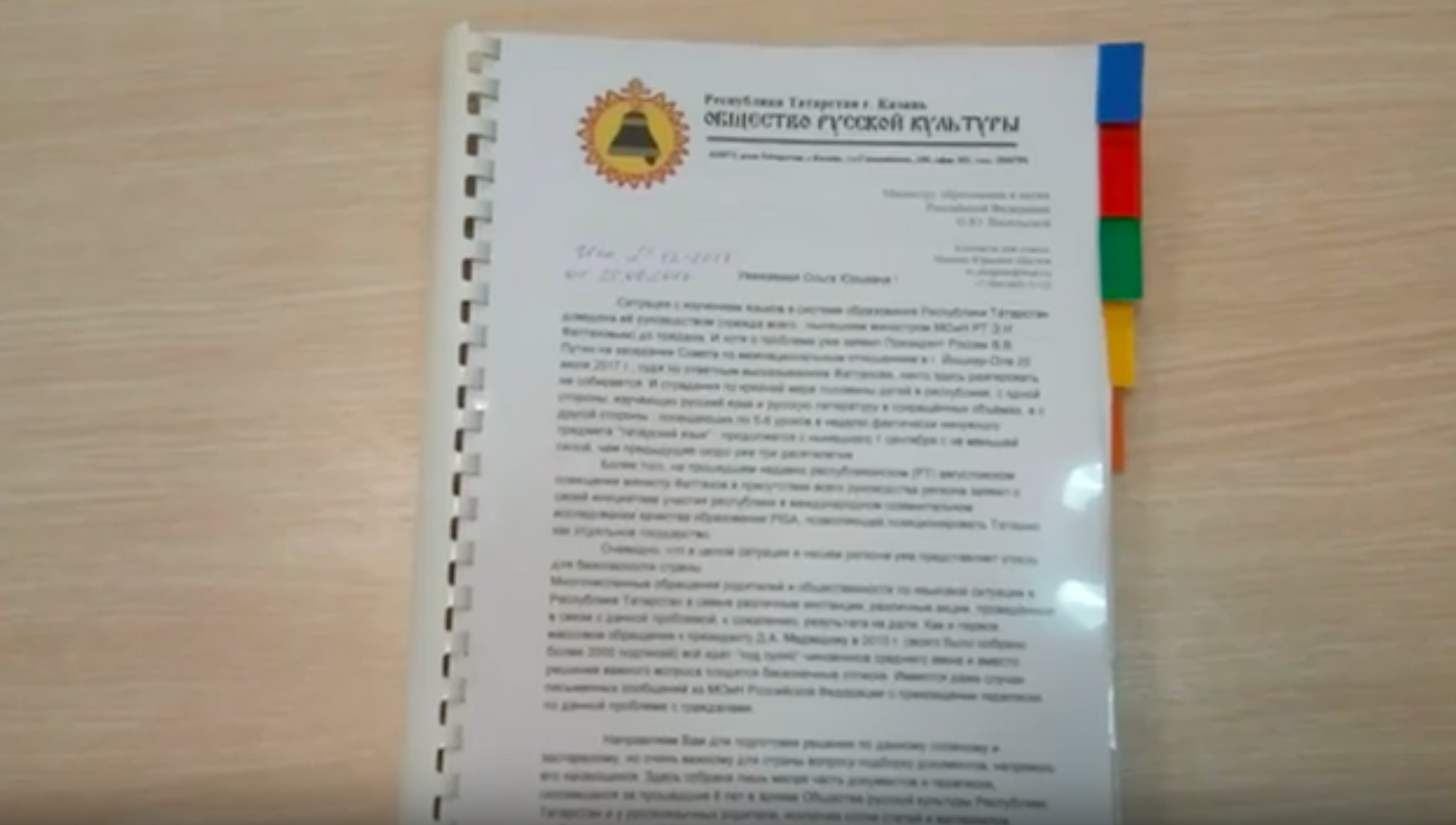 Созданный весной этого года "Комитет русскоязычных родителей Татарии" от лица Общества русской культуры Татарстана отправил министру образования России Ольге Васильевой папку с предложениями и жалобами об изучении татарского языка в школах республики.