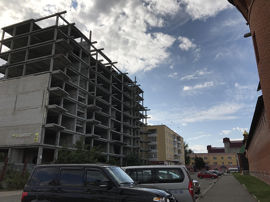 Считается (это подтверждают и представители застройщика), что строительство многоэтажного жилого дома было приостановлено после прямого указания бывшего главы Марий Эл Леонида Маркелова. Ему не понравилось, что возводимое в исторической части Йошкар-Олы здание — десятиэтажное.