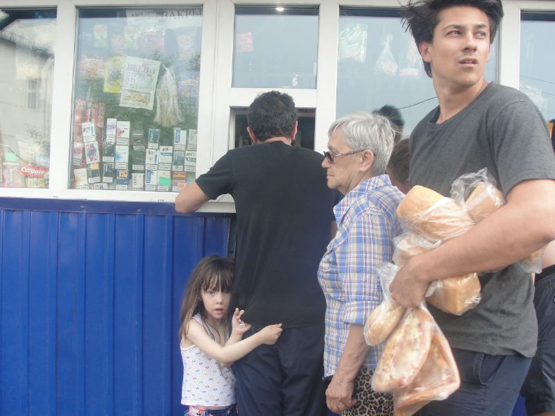 За десять минут стоянки люди закупаются хлебом, сигаретами и холодным пивомФото: Виктория Микиша — Еще как! Голова вот такая! Шкура вся переливается. Хорошо, ветер с моря дул, он меня не унюхал. А однажды клоповку собираю — ягода такая, красненькая. И бурый был медвежонок, я заорал, он заорал — и мы покатились по склону, он от меня, я от него, он тоже напугался! Страшно, а потом уже смеешься.
