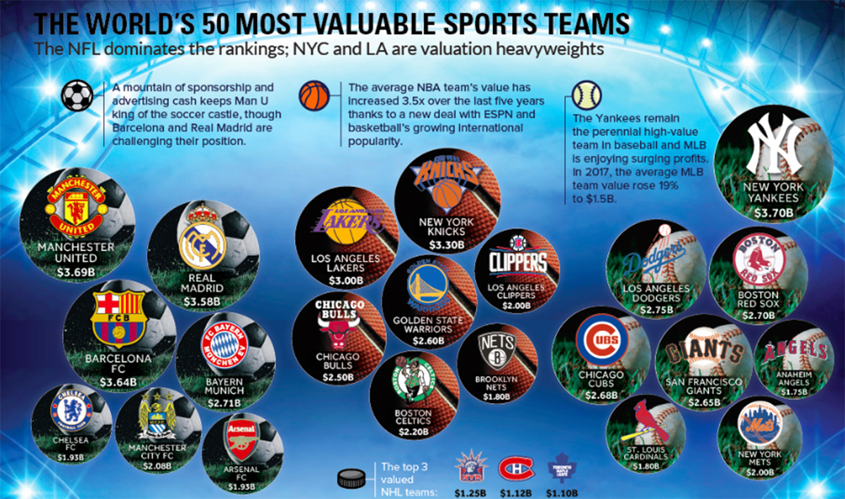 У нас нет спортивного отдела, но мы можем иногда компенсировать его отсутствие. Вот инфографика с самыми дорогими спортивными клубами мира: