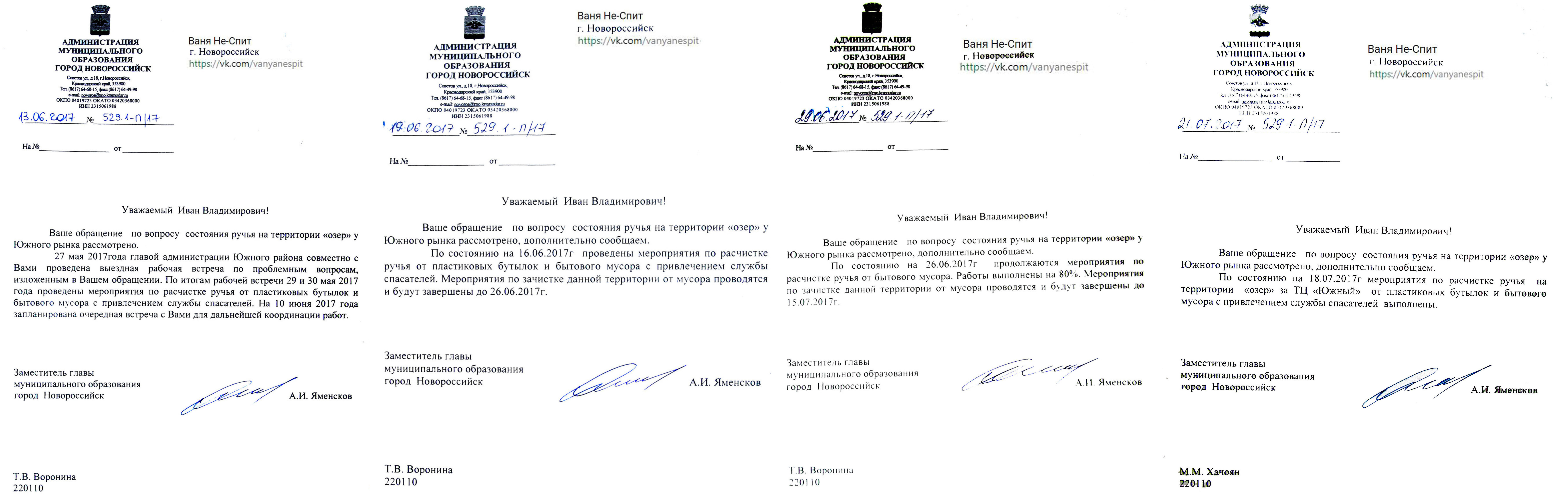 В администрацию Новороссийска и лично мэру города Игорю Дяченко поступил ряд жалоб и обращений от местного жителя Ивана, обеспокоенного отвратительным санитарным состоянием ручьев.