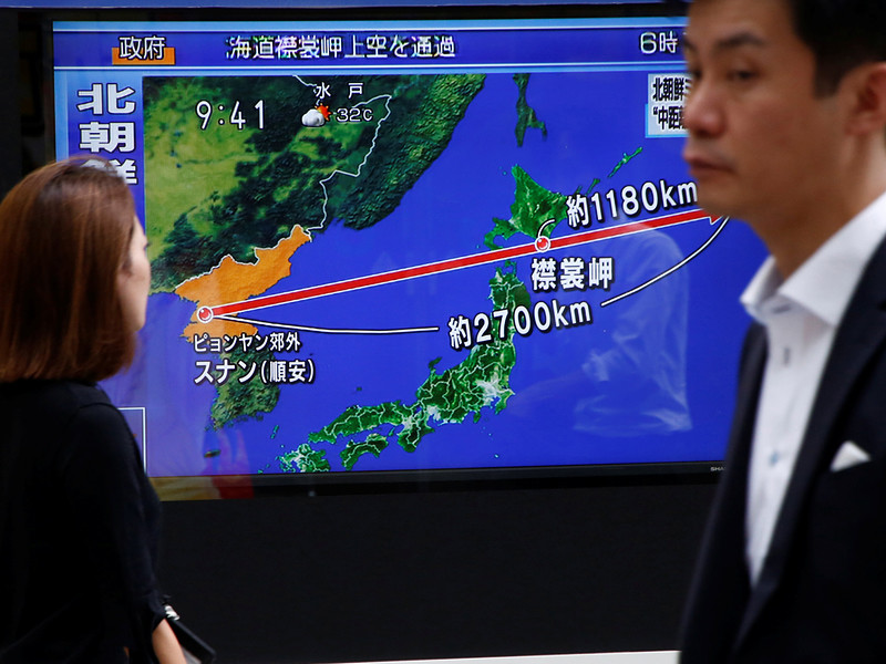 Как сообщалось, запущенная КНДР ракета пролетела около 2700 км, в том числе над японской территорией, достигнув при этом максимальной высоты 550 км. Генсек кабинета министров Японии Есихидэ Суга сообщил, что ракета перелетела через северный остров Хоккайдо и упала в Тихий океан в 1180 км к востоку от мыса Эримо.