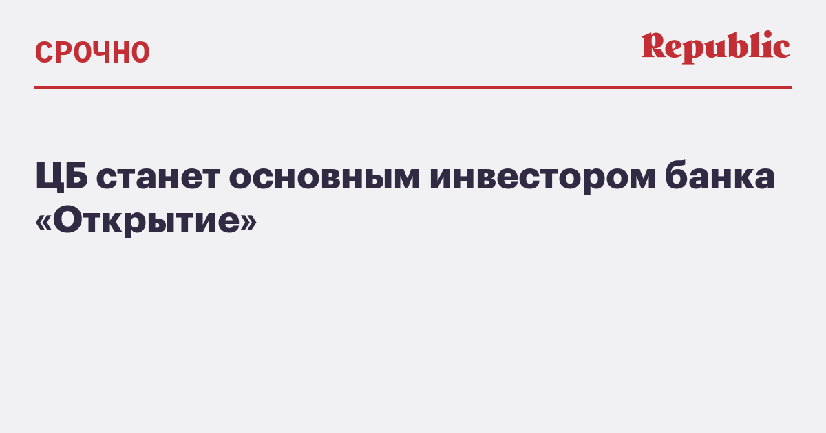 ЦБ РФ станет основным инвестором «Открытия». Об этом говорится в сообщении регулятора.
