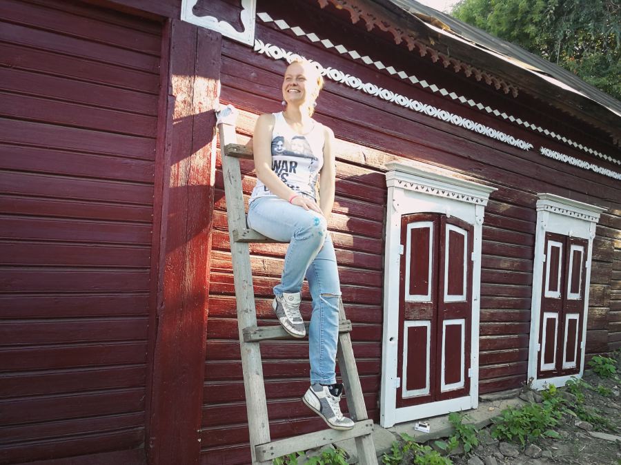Аня МельниковаФото: Евгения Волункова Вместе с четырьмя друзьями Аня в прошлом году привела в порядок один дом. Они работали летом и осенью. И даже когда пошел снег. Обшарпанный фасад стал ярким, бело-голубым. Дом расцвел и распрямился.