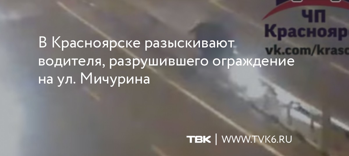 В Красноярске разыскивают водителя, разрушившего ограждение на ул. Мичурина
