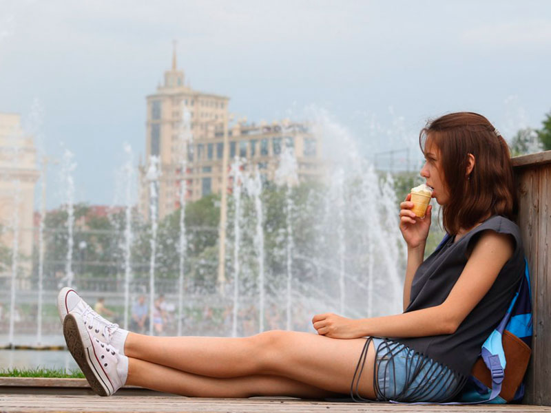 Жара в Москве. Девушка у фонтана / АГН "Москва" / фото: Никеричев Андрей