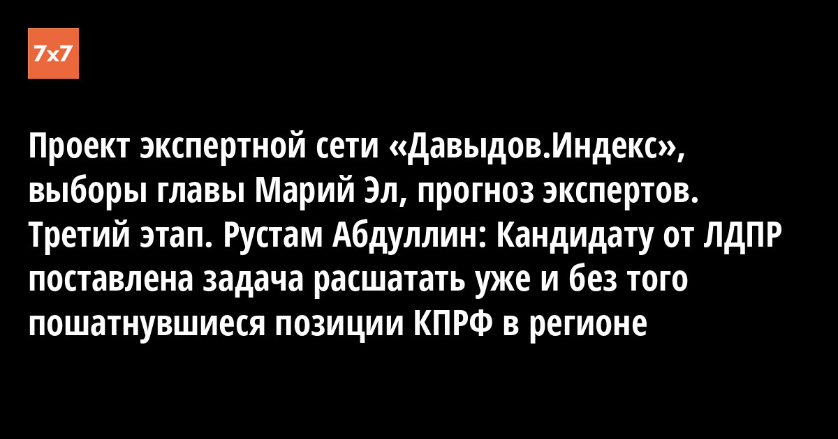 Проект экспертной сети «Давыдов.Индекс», выборы главы Марий Эл, прогноз экспертов. Третий этап. Рустам Абдуллин: Кандидату от ЛДПР поставлена задача расшатать уже и без того пошатнувшиеся позиции КПРФ в регионе