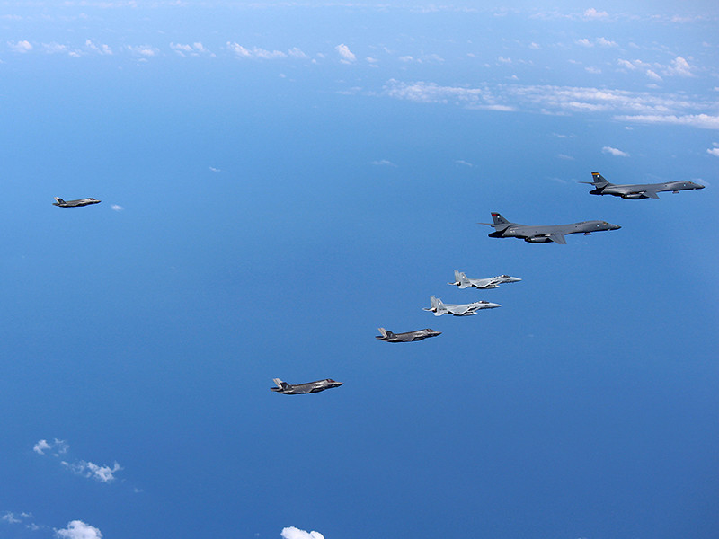 Два стратегических бомбардировщика ВВС США B-1B и два истребителя-бомбардировщика F-35B прибыли в район Корейского полуострова на совместные учения с ВВС Южной Кореи, сообщает южнокорейский телеканал YTN.