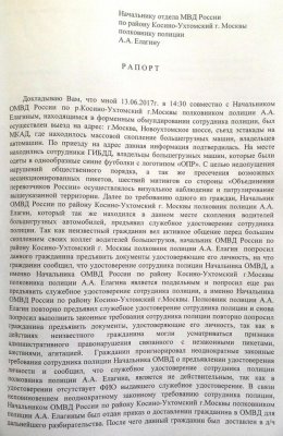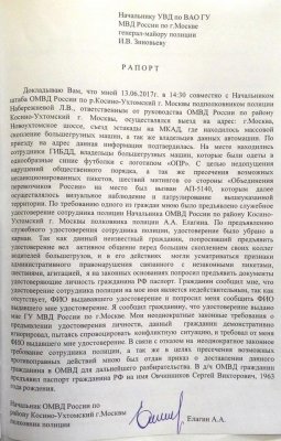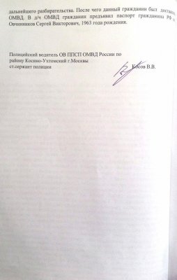 Неповиновение законным требованиям, по мнению полиции, состояло в том, что Овчинников отказался предъявить документы. Как пишет Яценко, в рапорте, составленном на Овчинникова, было написано, что у активиста попросили паспорт, поскольку в его действиях «могли усматриваться признаки административного правонарушения, связанного с незаконными пикетами, шествиями, агитацией». Когда же он отказался, его доставили в отдел «в целях пресечения возможных противоправных действий».